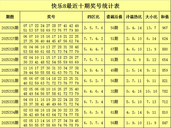 四分裂析:上期奖号四区比开出6:3:7:4,其中二区走冷,三区走热,近5期四区奖号分别开出29个、25个、21个和25个,相连10期四区总比例为53:54:47:46,四区走冷,二区走热,本期预测各区走势相配,分别出现5个号码。 遗漏分析:上期奖号遗漏总值为56,冷温热码落号个数比为1:9:10,近5期号码遗漏总值分别为:56、32、73、61、56,冷温热码分别开出12个、27个和61个,当今80个号码中冷温热码分别有14个、17个和49个,本期冷温热码比参考2:5:13。 大小分析:近10期大小比为93:107,小 号出现比例较高,其中大号热出3期,小 号热出6期,大小走势均衡1期,上期开出大小比11:9,本期看好小 号回补,大小比参考10:10。 和值分析:上期奖号和值开出847,比前期飞腾37点,近10期和值波动限制在624-967区间,和值均值为795.6,本期看好和值下落,预测在820隔邻开出。 陈青峰欢欣8第2025336期奖号参考: 杀八码保举:08 19 23 36 41 43 49 58 选一保举:11 选二保举:06 11 、45 56 、53 78 、53 71 、20 70 选三保举:06 11 45 、45 56 78 、21 53 78 选四保举:06 11 45 78 、45 56 70 78 、21 53 55 78 、18 53 56 71 选五保举:06 11 45 53 78 、33 45 56 70 78 、06 21 53 55 78 、18 21 53 56 71 选七保举:06 11 45 53 66 70 78 、25 33 45 56 66 70 78 、06 21 53 55 56 71 78 、18 21 27 53 56 69 71 选十保举:06 09 11 25 45 53 55 66 70 78 、20 25 33 45 55 56 66 70 71 78 、06 09 18 21 33 53 55 56 71 78 十五码保举:06 09 11 20 21 25 27 45 53 55 66 69 70 71 78 (可作念选9复式、胆拖投注) 十七码保举:06 09 11 20 21 25 27 33 45 53 55 56 66 69 70 71 78 (可作念选10复式、胆拖投注) 二十码保举:06 09 11 18 20 21 25 27 33 34 45 53 55 56 57 66 69 70 71 78 [扫码下载app东莞市汇佳纸业有限公司,中过数字彩1千万以上的群众齐在这儿!]