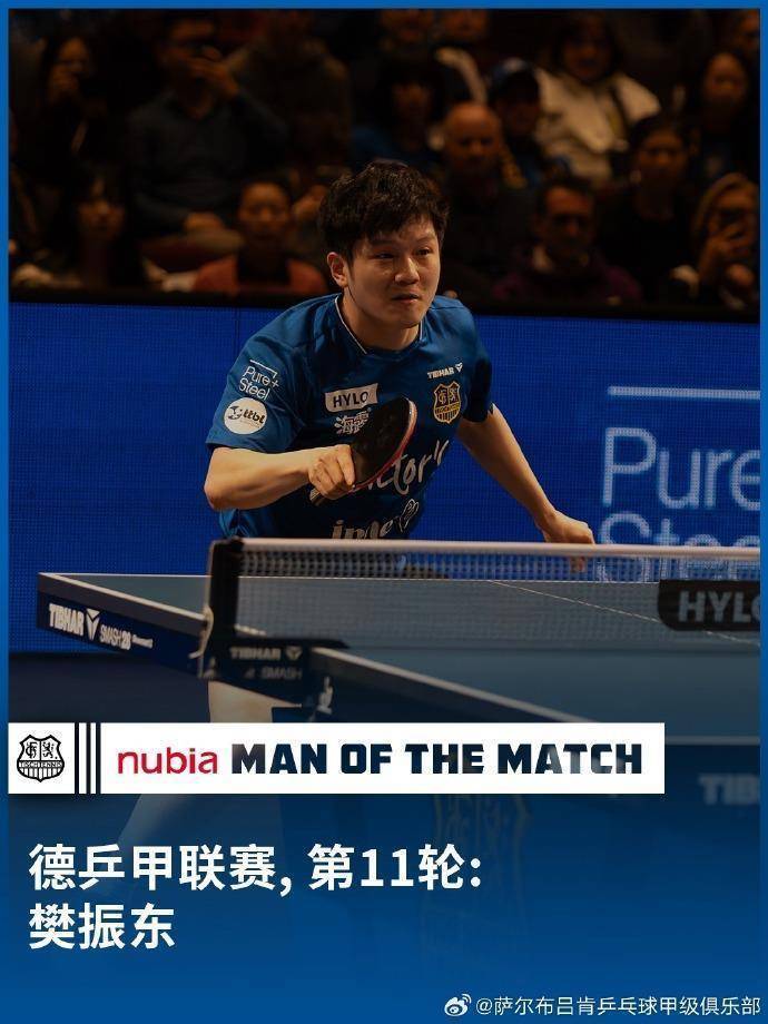 22日,在德国萨尔布吕肯乒乓球俱乐部主场跨越3500名球迷的献媚下,萨尔布吕肯以3:2力克德甲十冠王杜塞尔多夫。其中,樊振东独得两分,立下公垂竹帛。现场球迷中,既有原土的德国球迷,也有不远千里从中国及环球各地奔赴而来的辅助者。德甲传闻球星波尔齐专程到场,一边为樊振东喝彩,一边担任现场发挥注解。 萨尔布吕肯乒乓球俱乐部随后在官方酬酢平台上,以“完好的年终收官”抒发重生。随后,其酬酢平台再次发布音讯,樊振东以90%的得票率当选为本场最好球员。 自本年6月1日官宣樊振东加盟以来,萨尔布吕肯乒乓球俱乐部的微博粉丝,从1万多狂涨至48.5万。 据此前干系报说念,樊振东到来后,萨尔布吕肯主场门票秒售罄,其联名球衣10分钟便售罄。