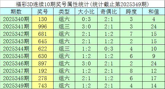 在前10期开奖中,全大组合出现2次,全小组合出现1次,两小一大组合出现4次,两大一小组合出现3次,本期瞻望开出两小一大组合。